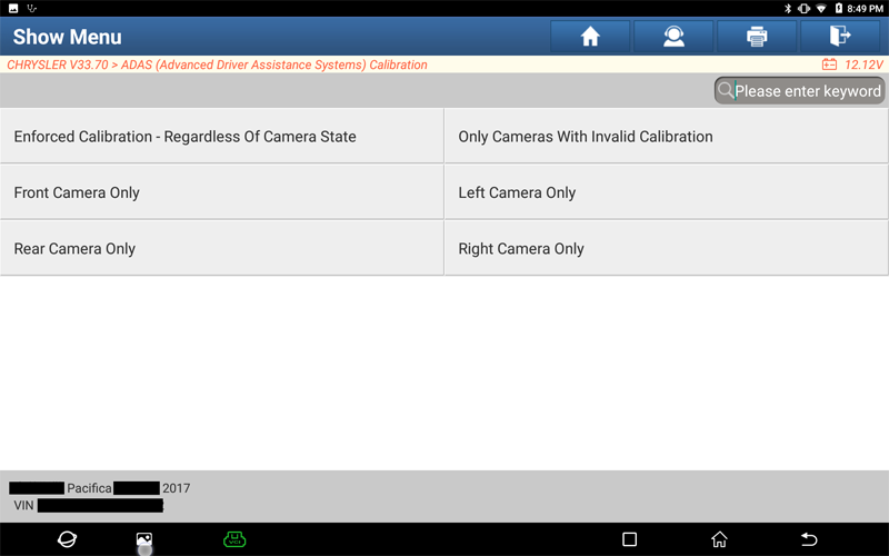 1. Automatically identify the car model through the ADAS calibration entrance VIN and enter the software.