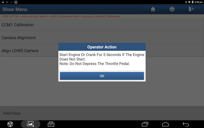 7. The vehicle is in calibration mode at this time. Do not turn off the ignition or disconnect the diagnostic instrument, and operate according to the prompts.