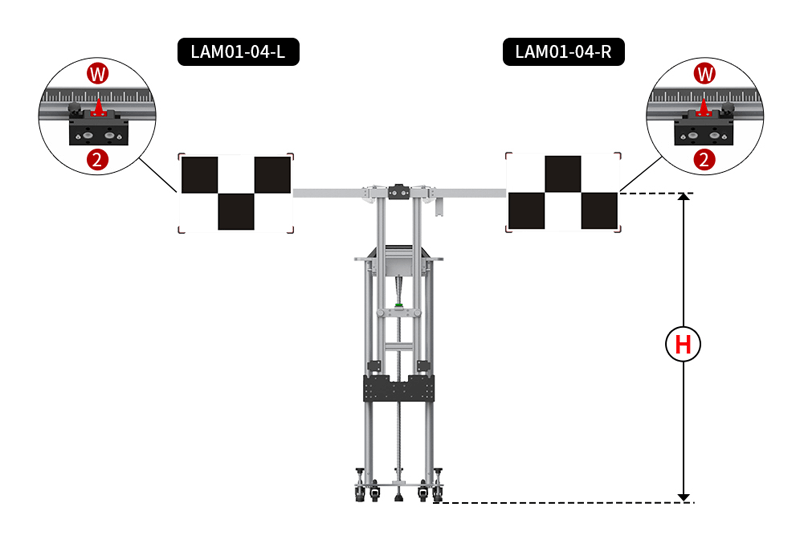 3. Use the target LAM01-XX and LAM01-XX, and install the target on the left and right sliders ②.