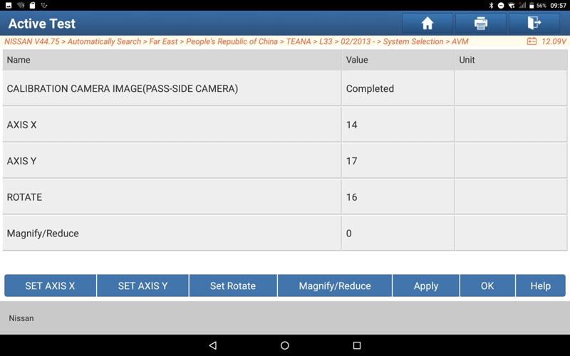 25. Select [Calibration Camera Image (Rear Camera)], modify the three values of X-axis, Y-axis, and rotation, and click [Apply], so that the red line on the central control screen coincides with the target.